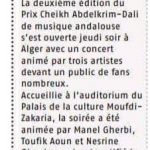 Accueil Articles – Prix Cheikh Abdelkrim DALI 2 eme Edition – 2018 Article2