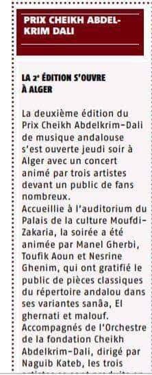 Revue de presse du 40ème anniversaire du décès de Cheikh Abdelkrim DALI Opéra