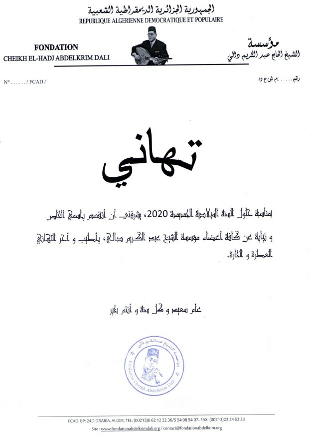 Création de la Fondation Cheikh Abdelkrim DALI en Mai 2008