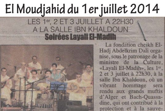 Revue de presse de layali el madih 1ère Edition en Juillet 2014