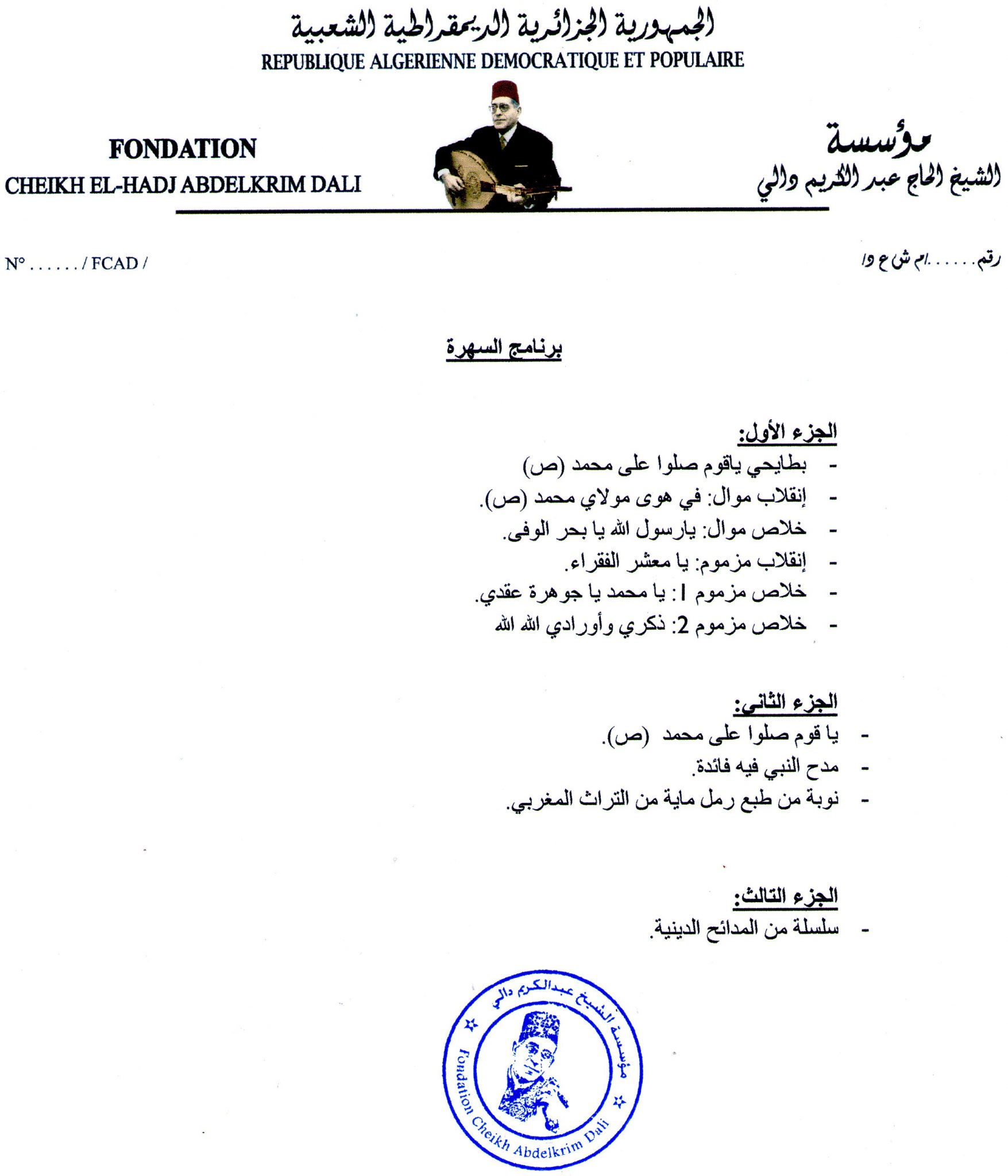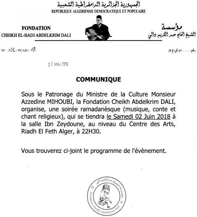 Accueil EN UNE Communiqué de la soirée du mois de Ramadhan du 02 juin 2018