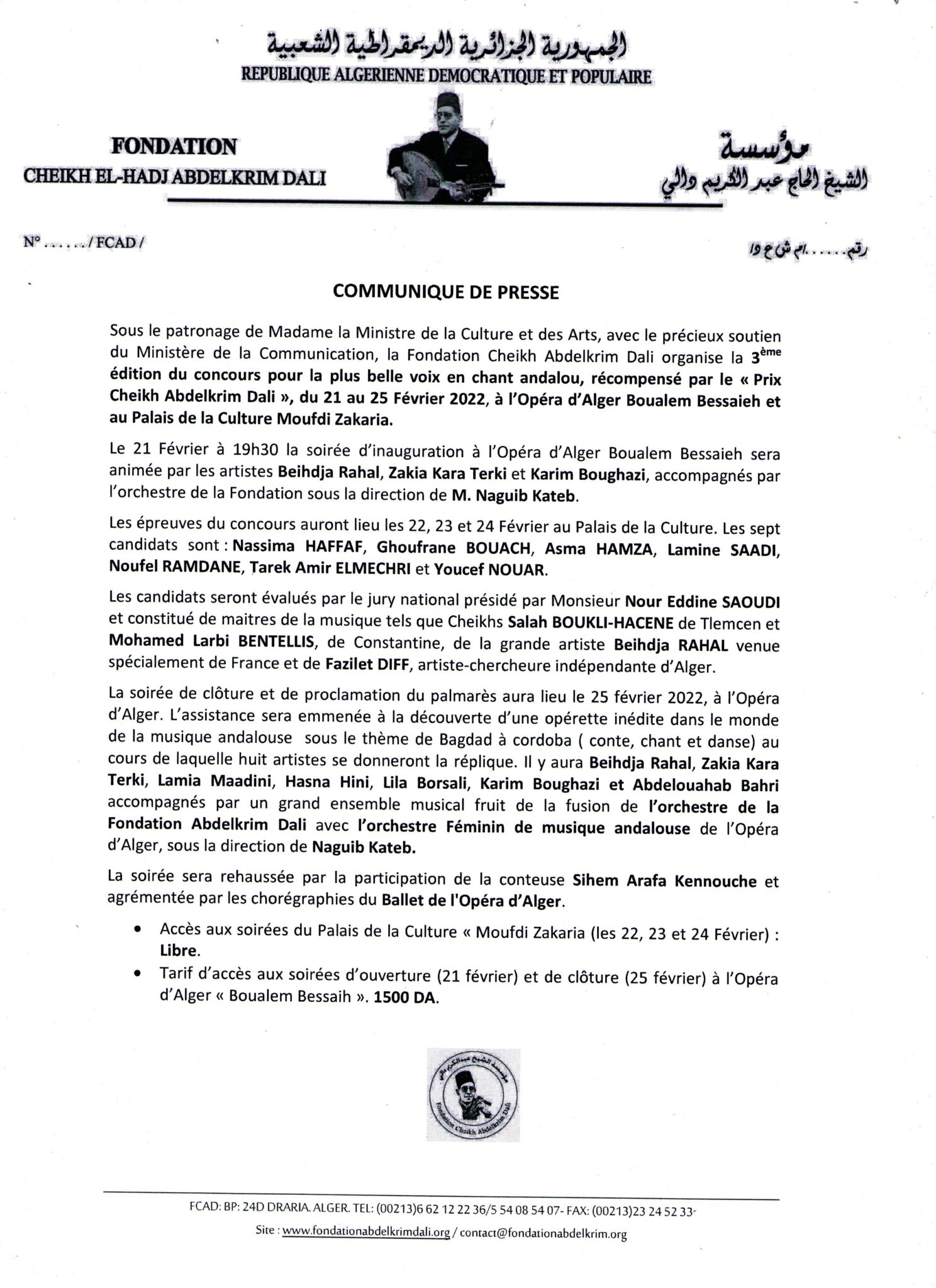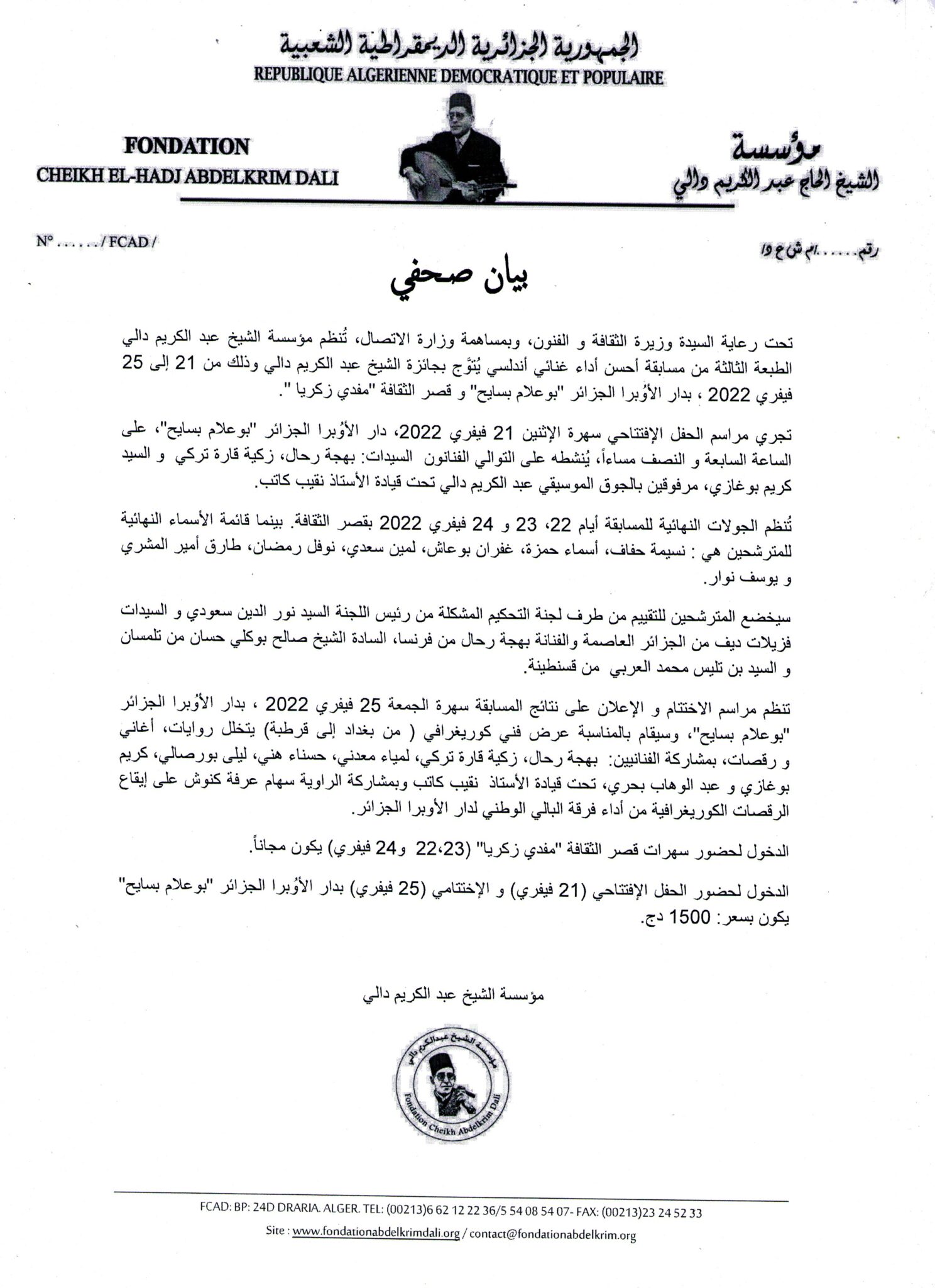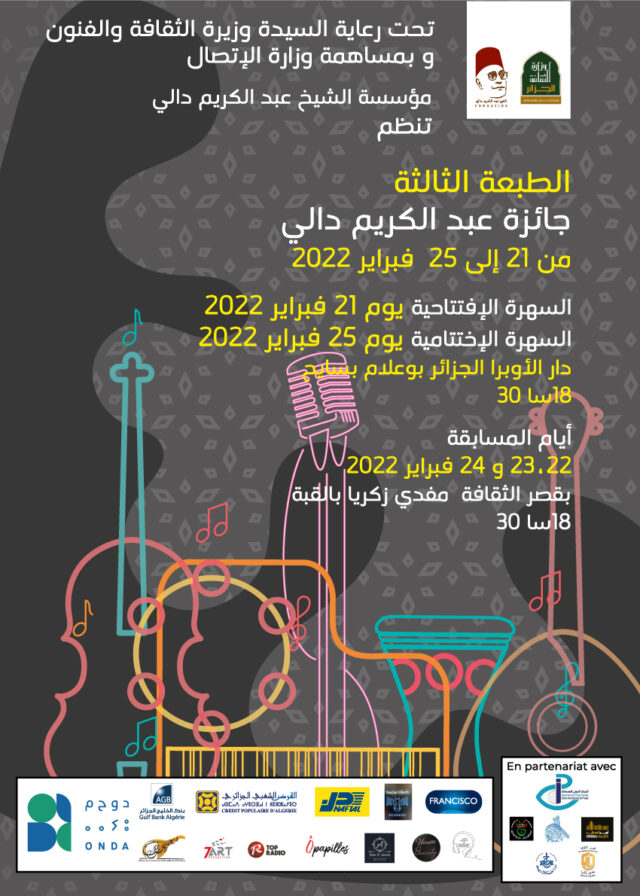 Accueil EN UNE Communiqué & Affiches Prix Cheikh Abdelkrim Dali 3eme édition EN UNEL'ACTUALITEL'EVENEMENTLES PHOTOSPRIX ABDELKRIM DALIFONDATIONPrix Cheikh Abdelkrim DALI 3ème Edition en février 2022RENDEZ-VOUS Communiqué & Affiches Prix Cheikh Abdelkrim Dali 3eme édition 24/10/2022 PARTAGER Facebook Twitter